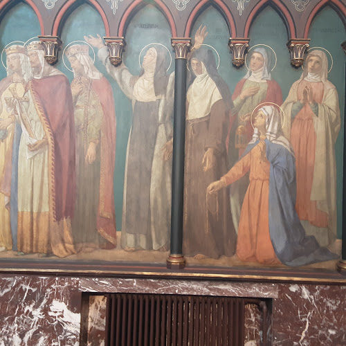 Een mooie kerk met een geweldig interieur. Het is anders dan andere kerken in Gent. De muur en het plafond zijn beschilderd met prachtige afbeeldingen van katholieke figuren met een mooie diepblauwe en gouden kleur. Dit is de eerste kerk die ik tegenkwam die elke vrijdag aanbidding serveert voor de vrede van Oekraïne en Rusland