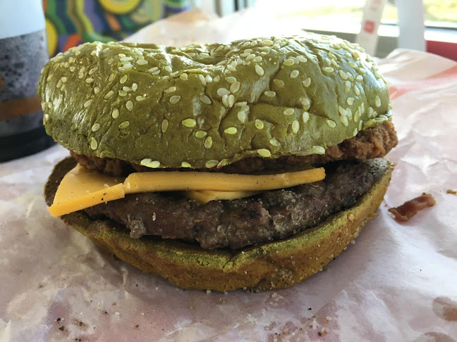 Persoonlijk zou ik hun rundvleesburgers niet aanbevelen. Het rundvlees lijdt aan het veel voorkomende probleem dat het droog is en een vreemde textuur/weinig smaak heeft, een probleem dat de meeste Amerikaanse hamburgerketens lijken te delen. Maar ik hou wel van hun kip- en visburgers.