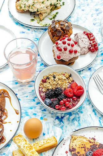 Ik was erg opgewonden om hier te komen en deze plek uit te proberen op basis van de mooie recensies, maar over het algemeen vond ik dat het oké was. Toen we voor het eerst zaten, kregen we te horen dat ze geen pannenkoeken hadden. Voor een brunchplek die in het begin teleurstellend aanvoelde. Dus voor drankjes bestelden we thee en mimosa. De mimosa was heerlijk en in plaats van sinaasappel was met mandarijn. De thee werd echter geserveerd in deze metalen piramide, die voor mij niet erg hygiënisch aanvoelde. Als eten bestelden we de hummus-toast, drie kaas-toast en chocolade beurre sal brioche. De hummus-toast zou gekarameliseerde uien bevatten, maar dat was helemaal niet het geval en had te veel azijn die erg krachtig was. De toast met drie kazen was echter heerlijk. Zeer romig en kwam met knoflook-mayo-saus aan de zijkant. De brioche was super lekker (ik had echter andere chocoladeknopen verwacht dan uit een pakje), maar toch was hij lekker, zoet en voldeed hij aan alle eisen. Service was ook goed. Het terras achterin is prachtig en bij mooi weer echt bijzonder. Over het algemeen voelde ik een mix van geweldig, goed en gemiddeld en daarom geef ik een 3-sterren.