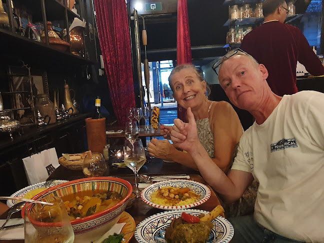Ik voel me hier echt op mijn gemak en het eten is gewoon geweldig!!Als voorgerecht nemen we altijd de Meze voor 2 personen en als hoofdgerecht neem ik Tajine met groenten en kip of met lam...Er zijn geen woorden om te beschrijven hoe lekker het is !!!Gewoon proeven en dan zal je snappen wat ik bedoel 😉